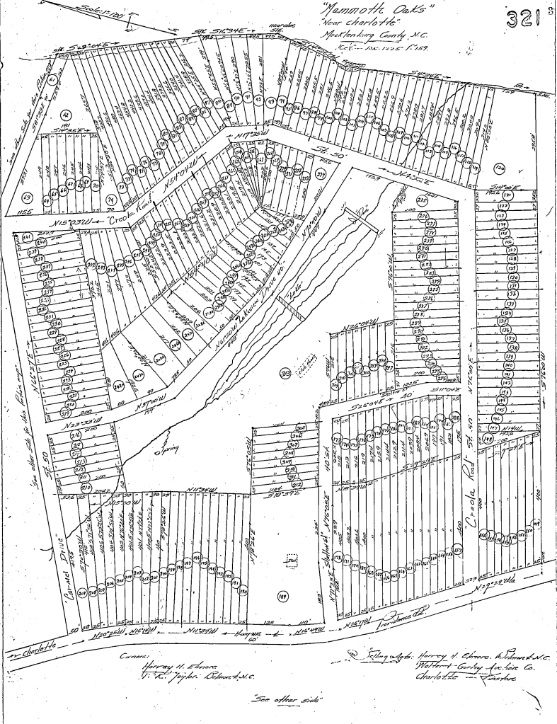 Mammoth Oaks was no longer the successful property it once was. In 1946 the Hutchison family sold for $61,000 a parcel of 76.39 acres that once made up the golf course to a group led by P. R. Taylor of Gaston County. Plans were made to develop the land into a residential neighborhood.